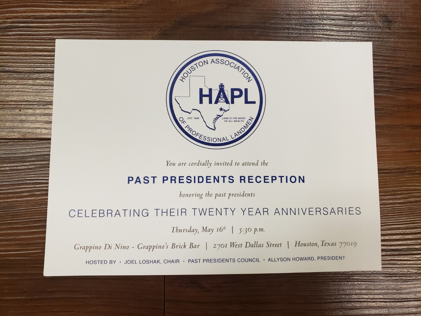 HAPL Past Presidents Reception