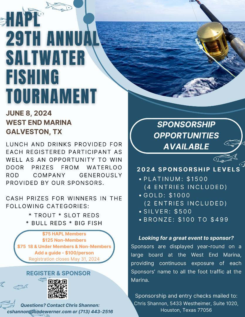 - All contestants assume any and all risks to their safety throughout the tournament. This Tournament benefits the HAPL to help support the HAPL. Consequently, NO REFUNDS, unless Tournament is cancelled. In the event of refund due to cancellation, a refund fee of no more than 6% may be assessed. Should a hurricane occur, the tournament date will be moved.
