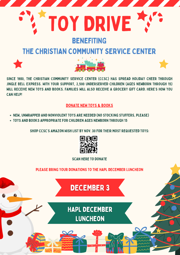 If you make a reservation, pay for it, and later decide to cancel it before the reservation deadline, you can apply for a refund through the HAPL Office. We must receive your request to cancel your registration in writing by email at hapl@hapl.org. You will receive the total amount charged minus a $5.00 credit card processing fee. The deadline for this event is Friday, November 29, 2024.