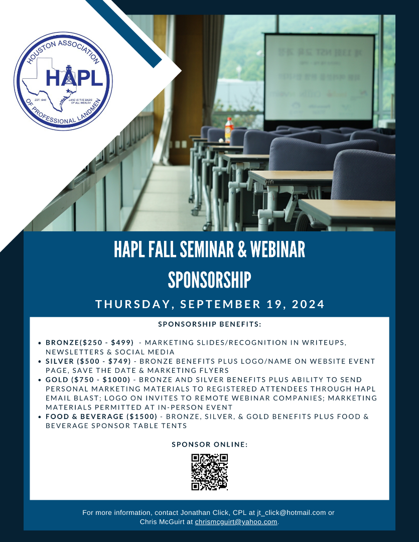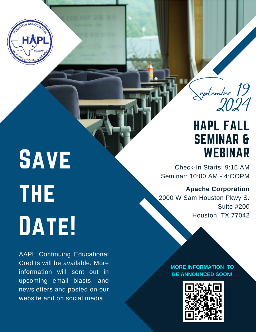 Don't forget to attend the HAPL 22nd Annual Permian Social at The Heights Social following the Fall Seminar & Webinar.
