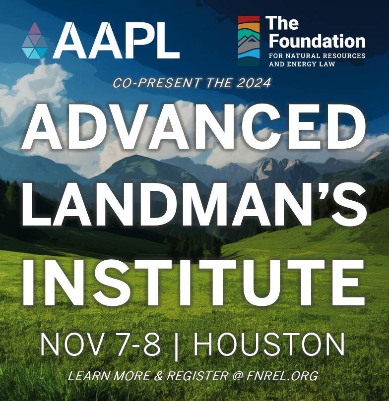 For the second time and the first time since 2019, the American Association of Professional Landmen (AAPL) has partnered with The Foundation for Natural Resources and Energy Law (formerly the Rocky Mountain Mineral Law Foundation) to together offer a course focused on advanced and more in-depth presentations on issues critical to the work of landmen for the modern development of energy and minerals. This course recognizes that the most successful landmen master more than land title and basic land contracts—they must have a good working knowledge of complex legal and contractual provisions and regulatory issues affecting development and keep abreast of market trends and current deal structures.