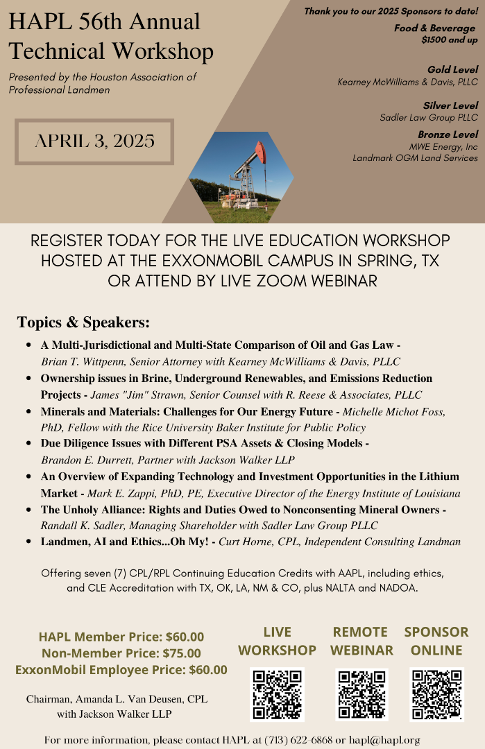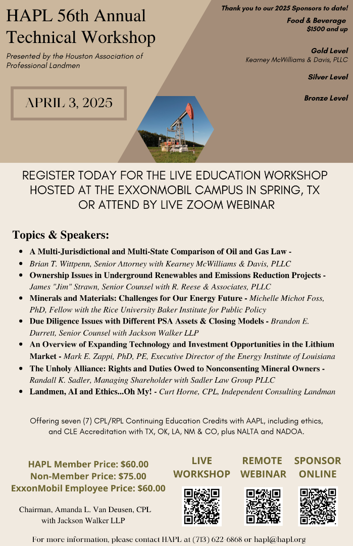 ** THE EXXONMOBIL LOCATION IS SOLD OUT. PLEASE REGISTER TO ATTEND THE WORKSHOP REMOTELY AT THE LINK BELOW **