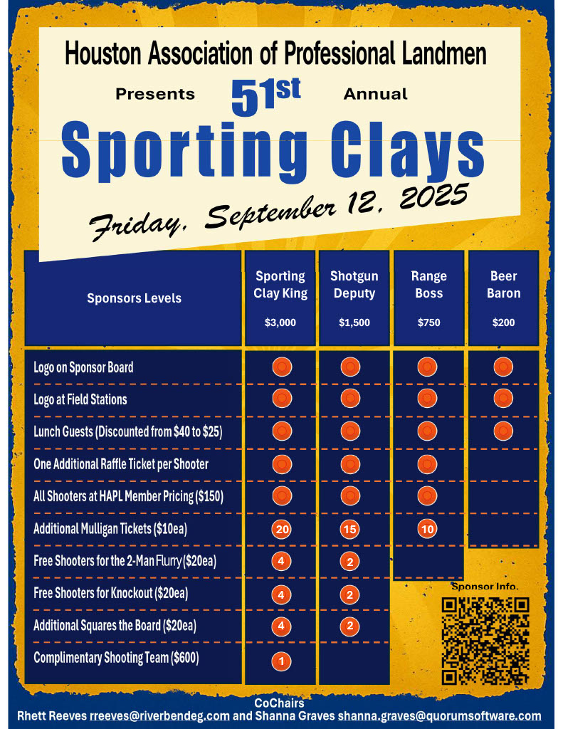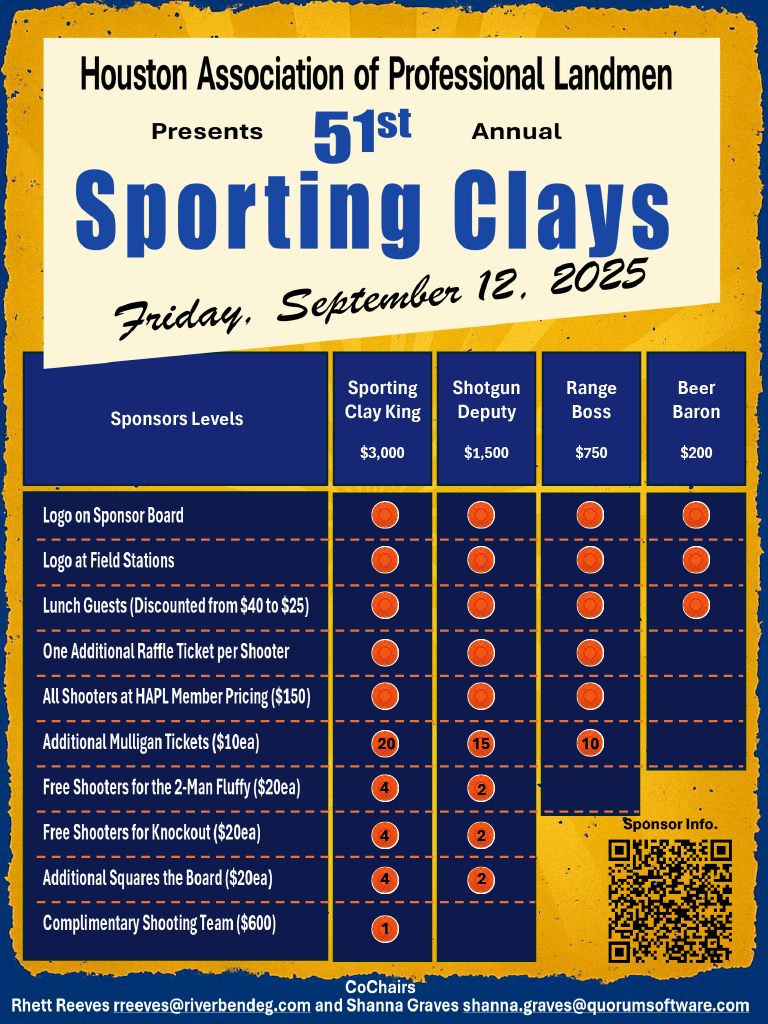 Join us for HAPL's 51st Annual Clay Shoot—where great shots and even better connections collide. Hit the green "Register" button on the right to lock in your spot, whether you’re flying solo or bringing a team.
