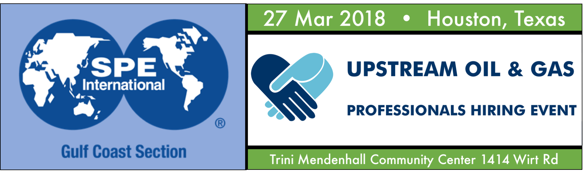 The Members in Transition committee of the SPE – GCS invite you to participate in the 3rd edition of the “Upstream Oil & Gas Professionals Hiring Event.” Following the success of the inaugural event in March 2017, we continue to provide a platform connecting experienced job seekers with upstream oil and gas companies to fill open positions.