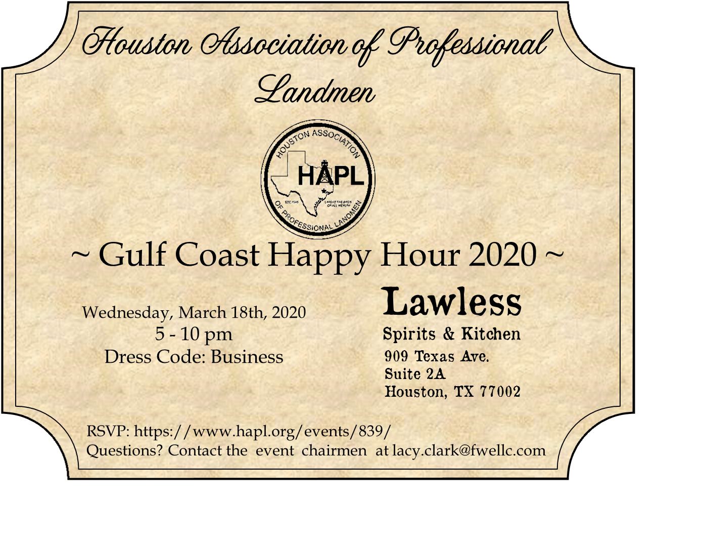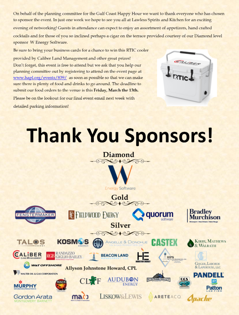 HAPL 2nd Annual Gulf Coast Happy Hour - POSTPONED