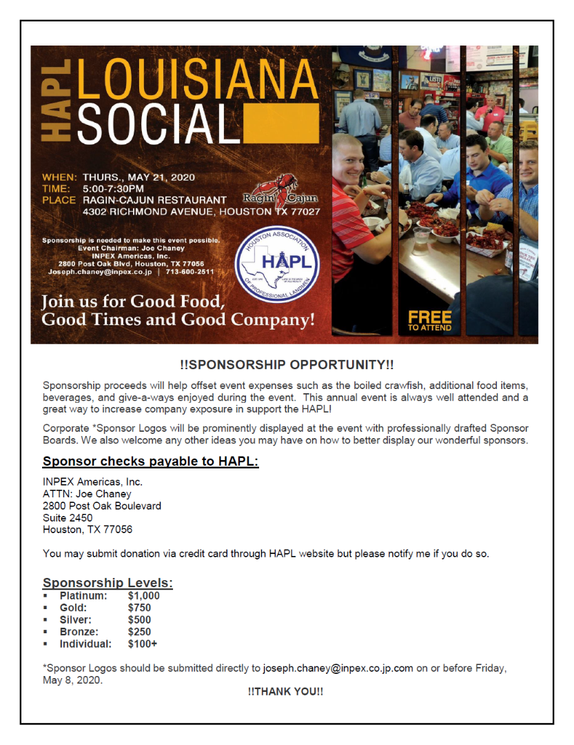 HAPL 26th Annual Louisiana Social - CANCELLED