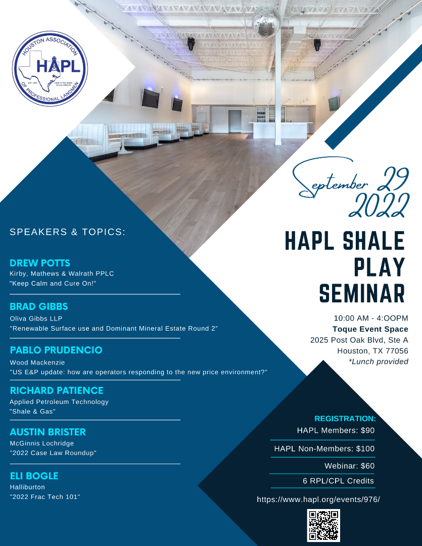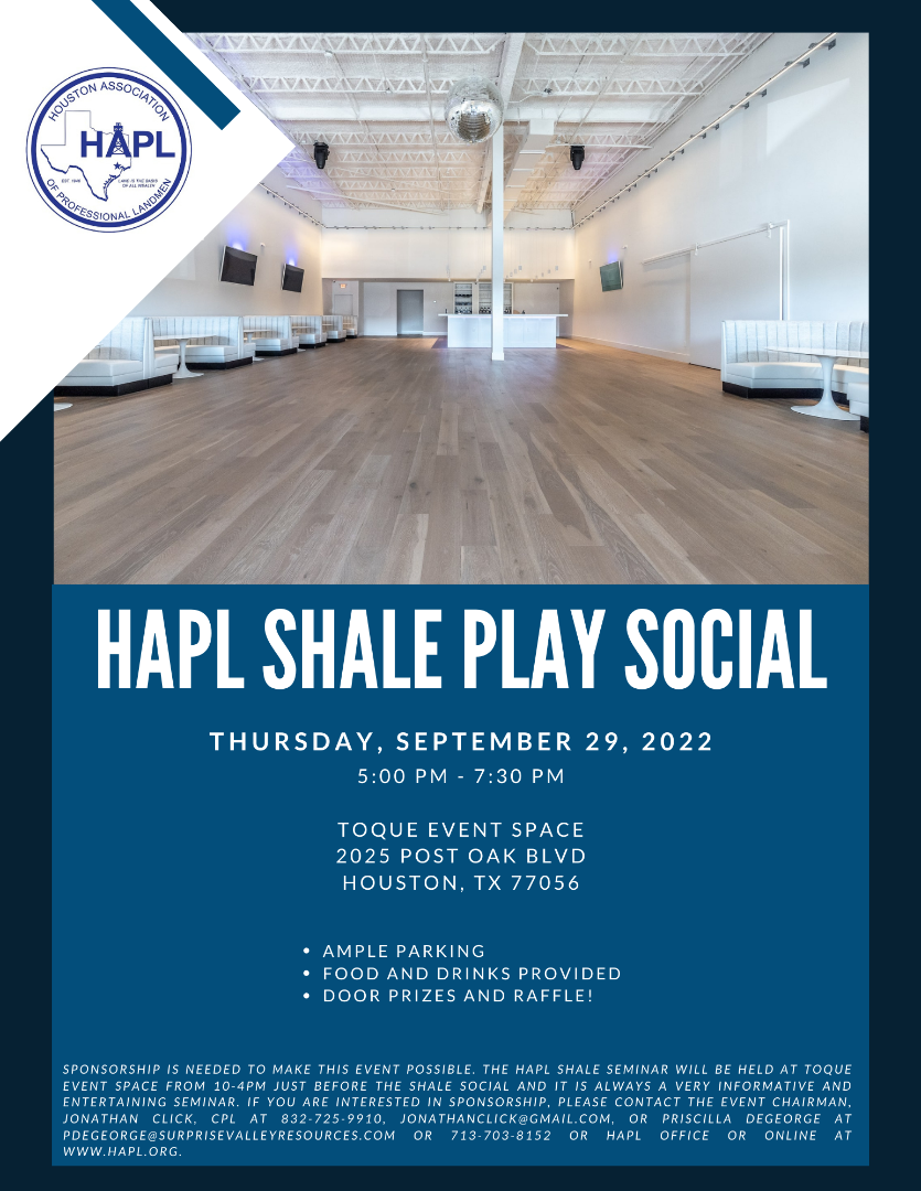The Houston Association of Professional Landmen (HAPL) Shale Play Seminar and the Shale Play Social