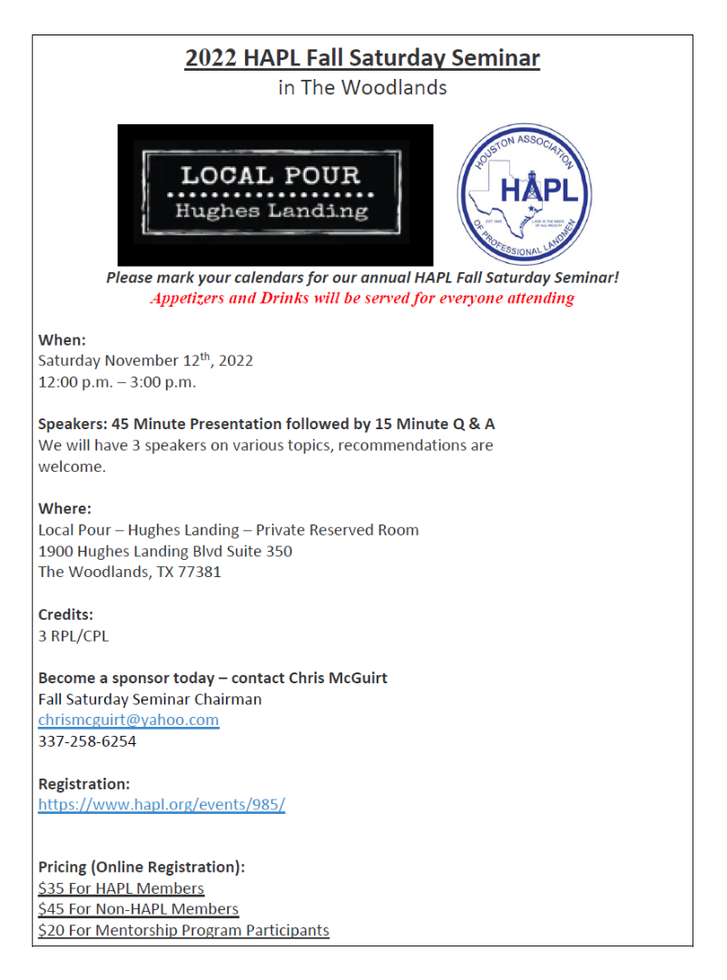 Fall Saturday Seminar Chairman